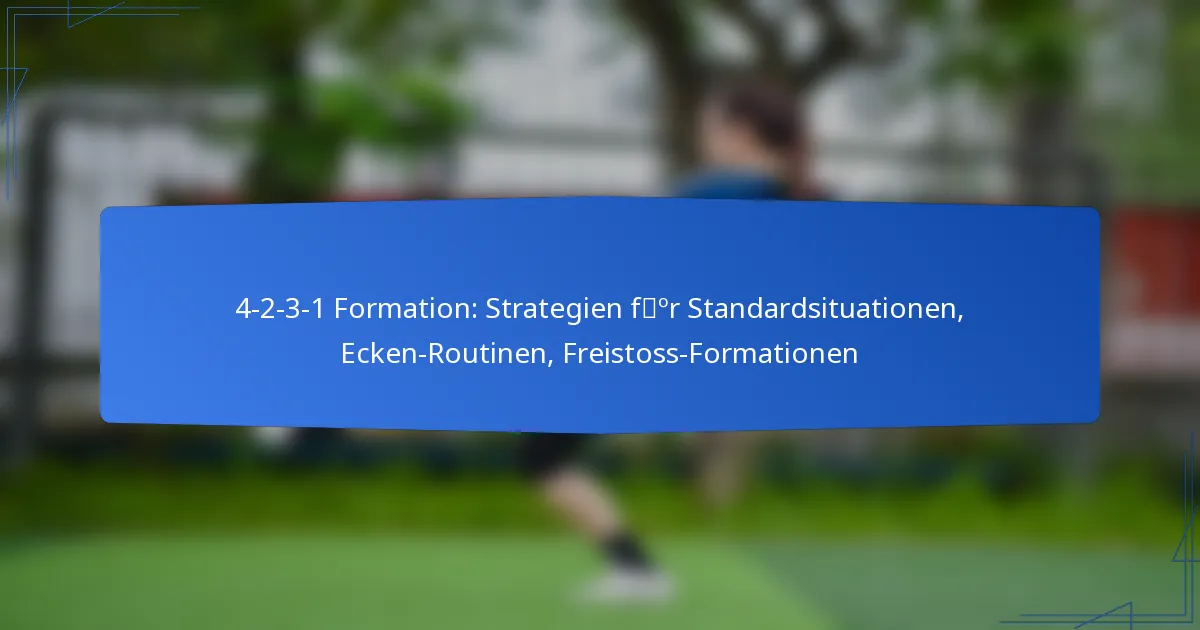Die 4-2-3-1-Formation ist eine weit verbreitete Fussballstrategie, die defensive Stärke mit Angriffspotenzial ausbalanciert. Um von diesem Setup zu profitieren, setzen Teams spezifische Standardsituationsstrategien um, insbesondere bei Ecken und Freistössen, um ihre Chancen auf Tore zu erhöhen und gleichzeitig die defensive Integrität zu wahren. Durch die Fokussierung auf die Positionierung der Spieler und das Ausnutzen der Schwächen des Gegners können Teams Standardsituationen in effektive Tormöglichkeiten umwandeln.
